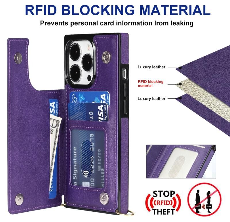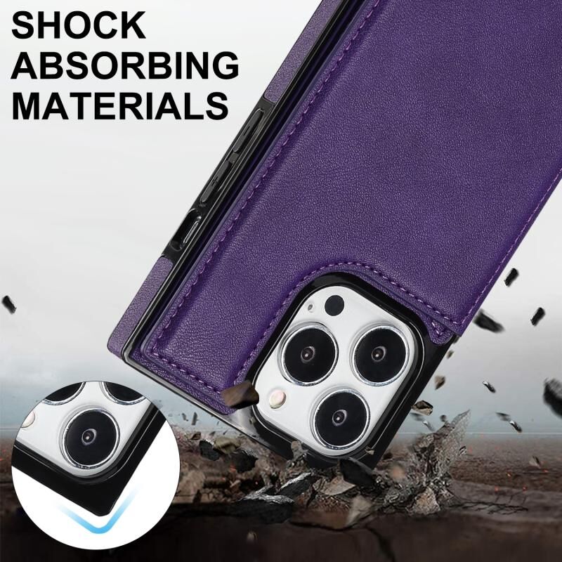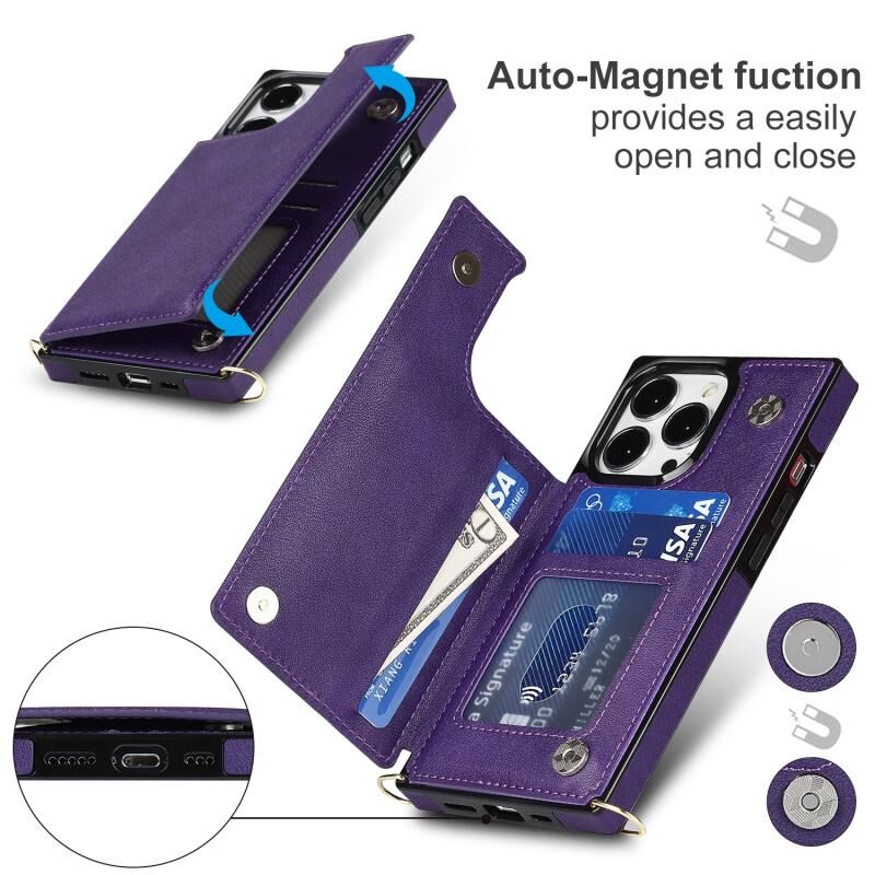 For iPhone 14 Pro Max Cross-body Square Dual-Buckle Card Flip Wallet Phone Case(Purple)