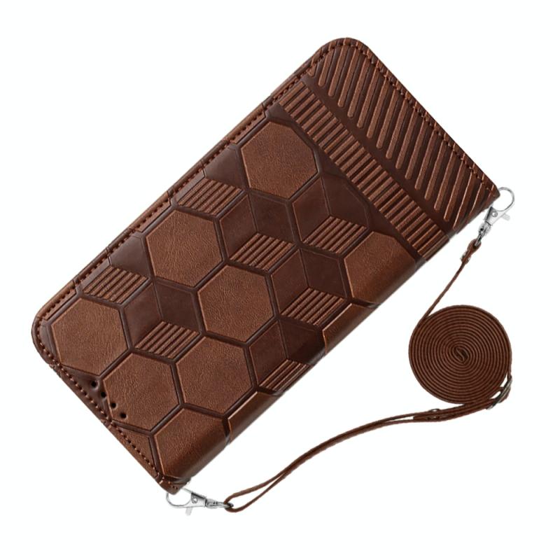 For iPhone 14 Pro Max Crossbody Football Texture Magnetic PU Phone Case (Brown)