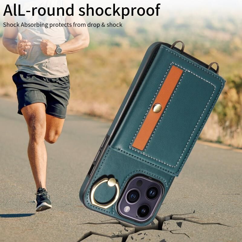Θήκη τηλεφώνου δερμάτινη για iPhone 14 Pro Max με θήκη κάρτας, λουρί Crossbody και δακτύλιο στήριξης (Πράσινο)