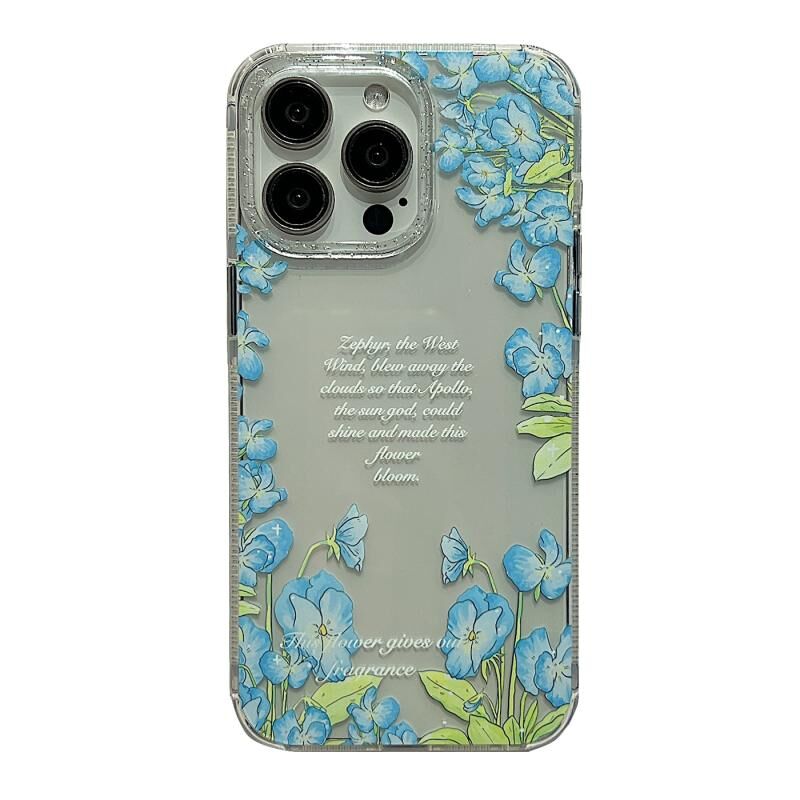 For iPhone 14 Pro Max Crystal Ice Cooling Shockproof TPU Phone Case(Blue Flower)