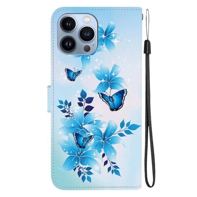 For iPhone 14 Pro Max Crystal Texture Colored Drawing Leather Phone Case(Blue Butterflies)