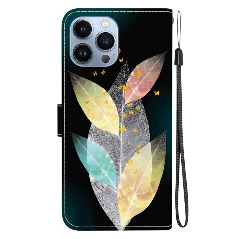 For iPhone 14 Pro Max Crystal Texture Colored Drawing Leather Phone Case(Colored Leaves)