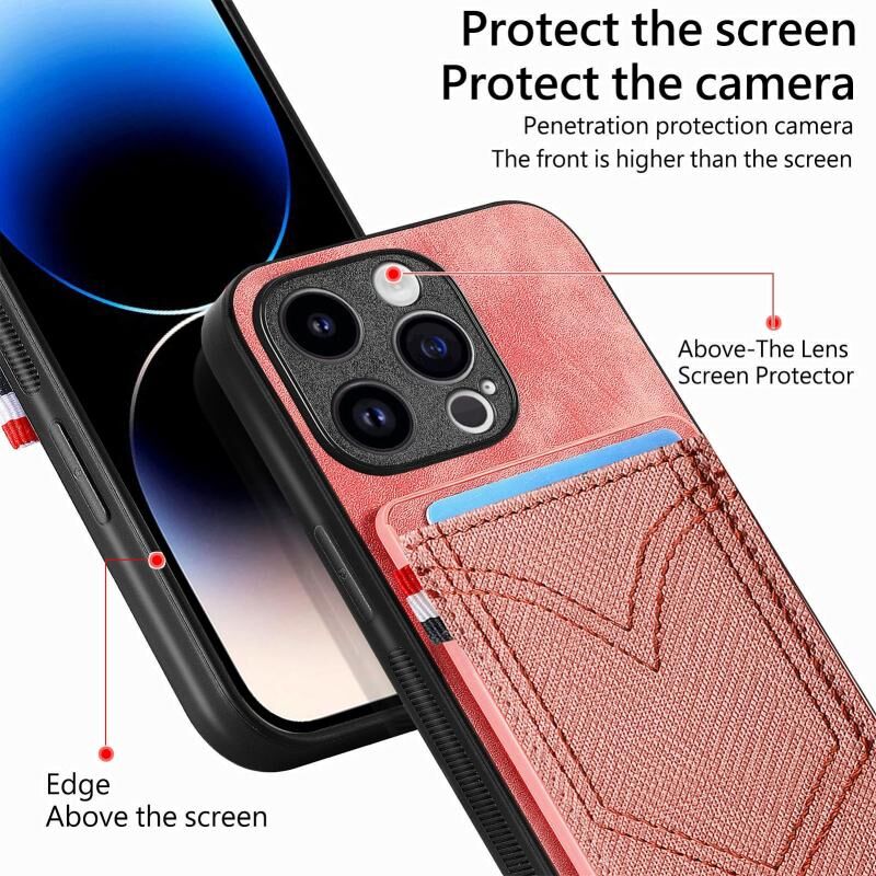 Θήκη τηλεφώνου από δέρμα με υφή τζιν για iPhone 14 Pro Max με θήκη για κάρτες (Μπλε)