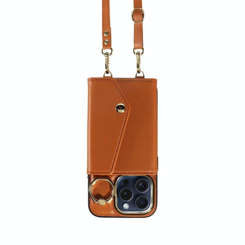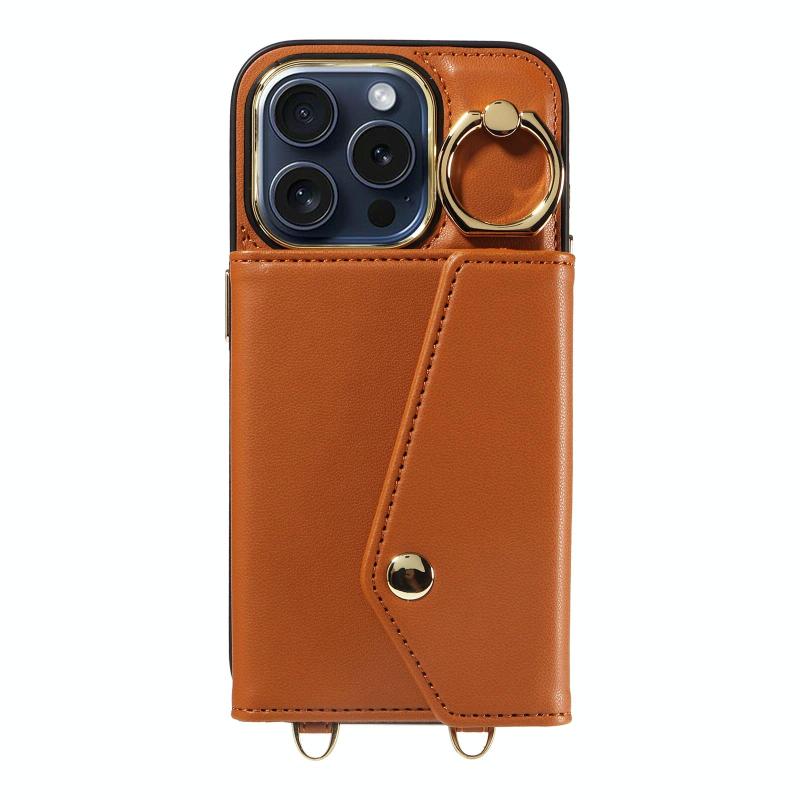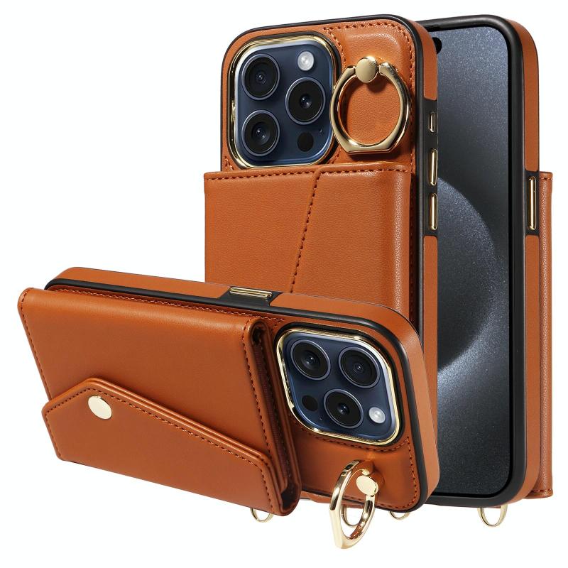 For iPhone 14 Pro Max Diagonal Crossbody Ring Organ Wallet Leather Back Phone Case(Brown)