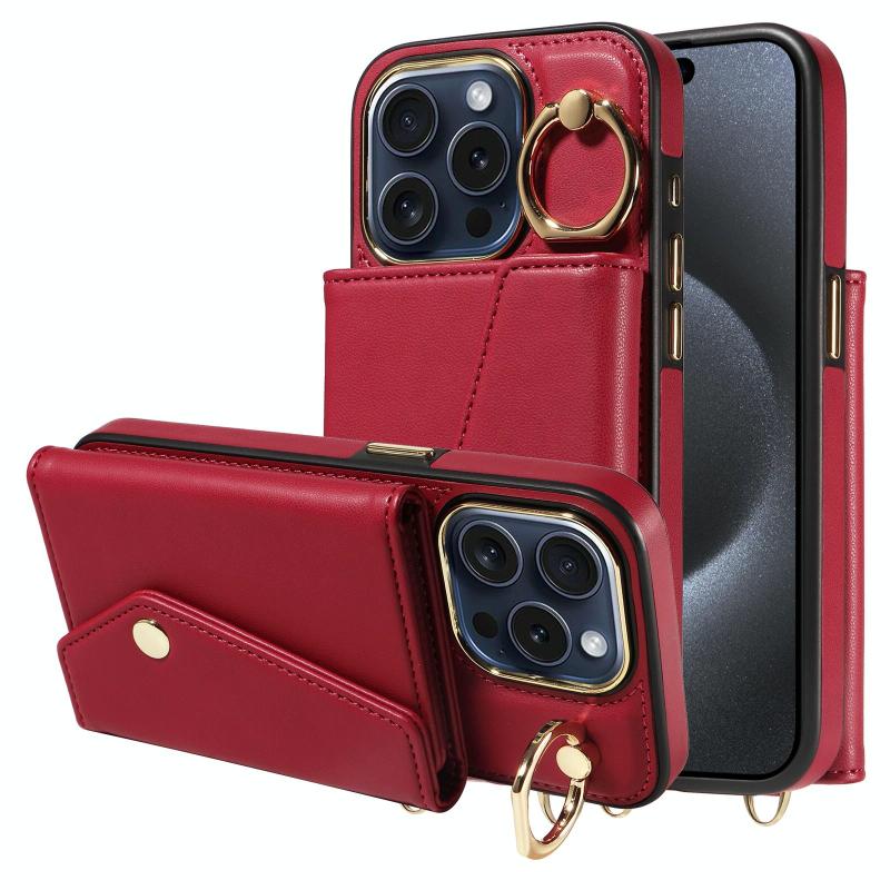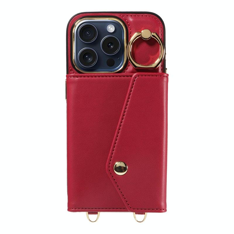 For iPhone 14 Pro Max Diagonal Crossbody Ring Organ Wallet Leather Back Phone Case(Wine Red)