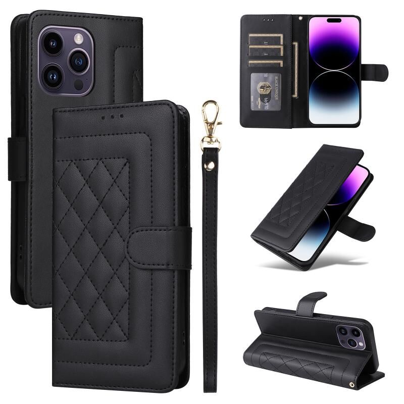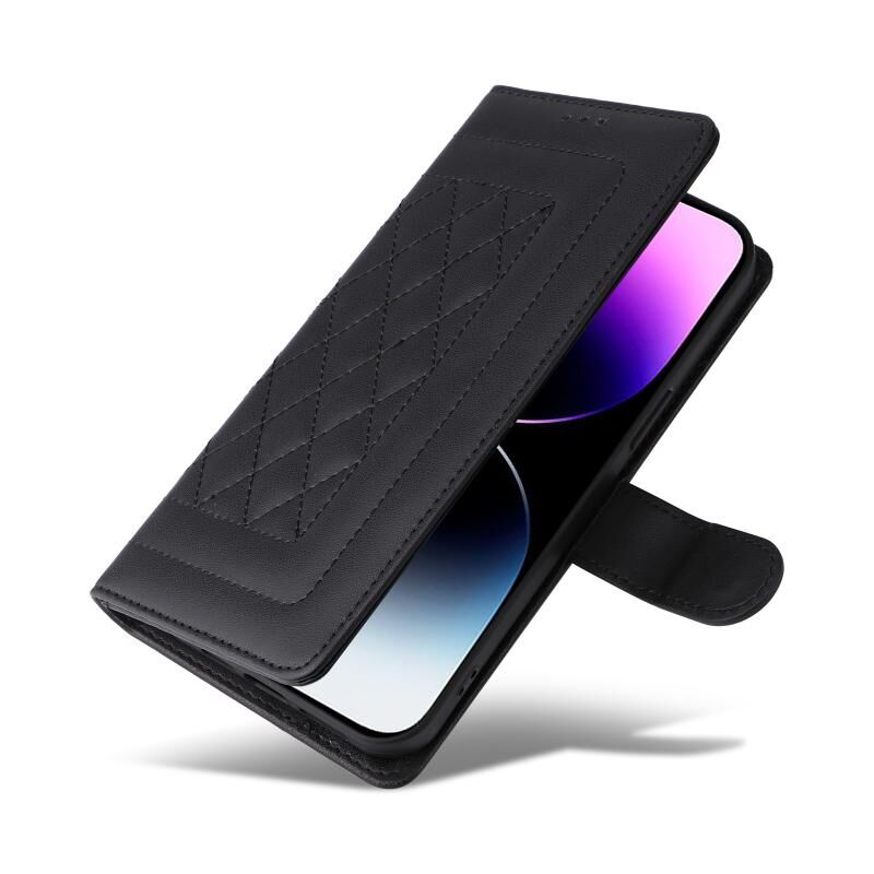 Θήκη για iPhone 14 Pro Max από Δερμάτινο Υλικό με Διαμαντένιο Πλέγμα, Πτυσσόμενη (Ανοιχτό Μωβ)