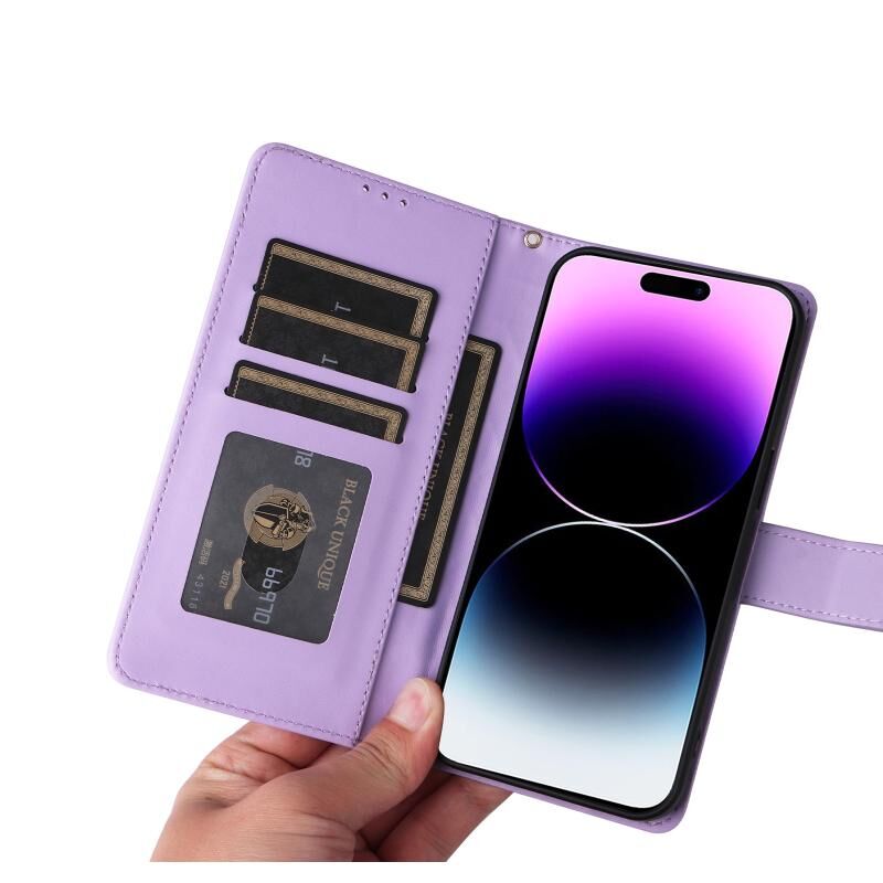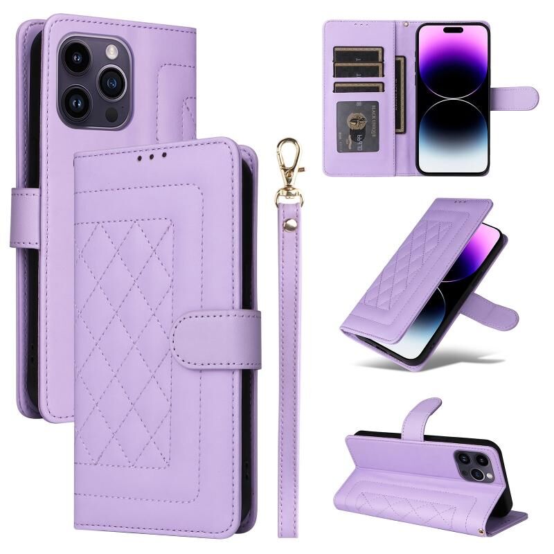Θήκη για iPhone 14 Pro Max από Δερμάτινο Υλικό με Διαμαντένιο Πλέγμα, Πτυσσόμενη (Ανοιχτό Μωβ)