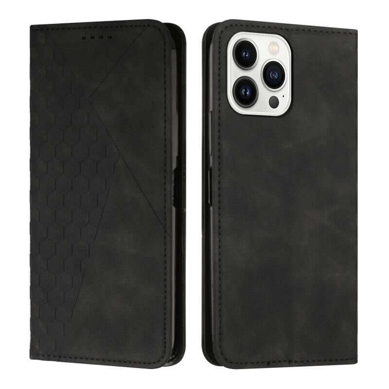 Θήκη τηλεφώνου μαγνητική για iPhone 14 Pro Max με υφή δέρματος και σχέδιο διαμαντιού (Μαύρο)