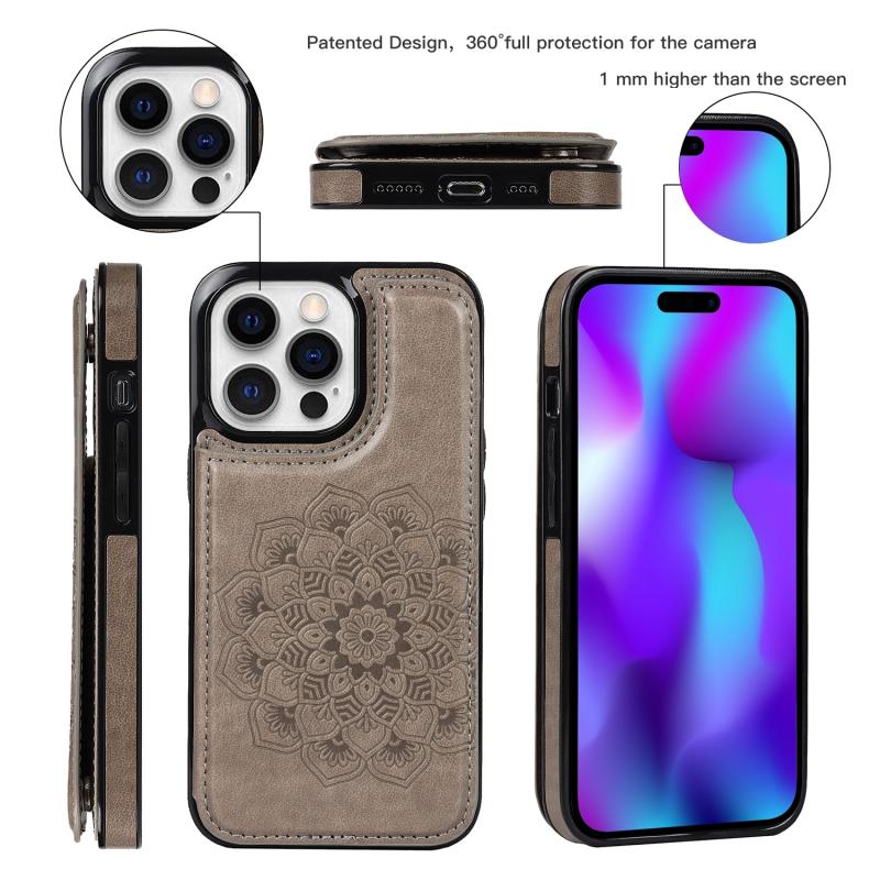 For iPhone 14 Pro Max Double Buckle Mandala Leather Wallet Back Cover Phone Case(Brown)