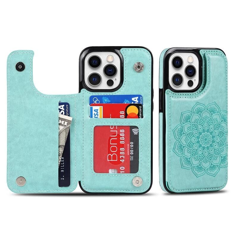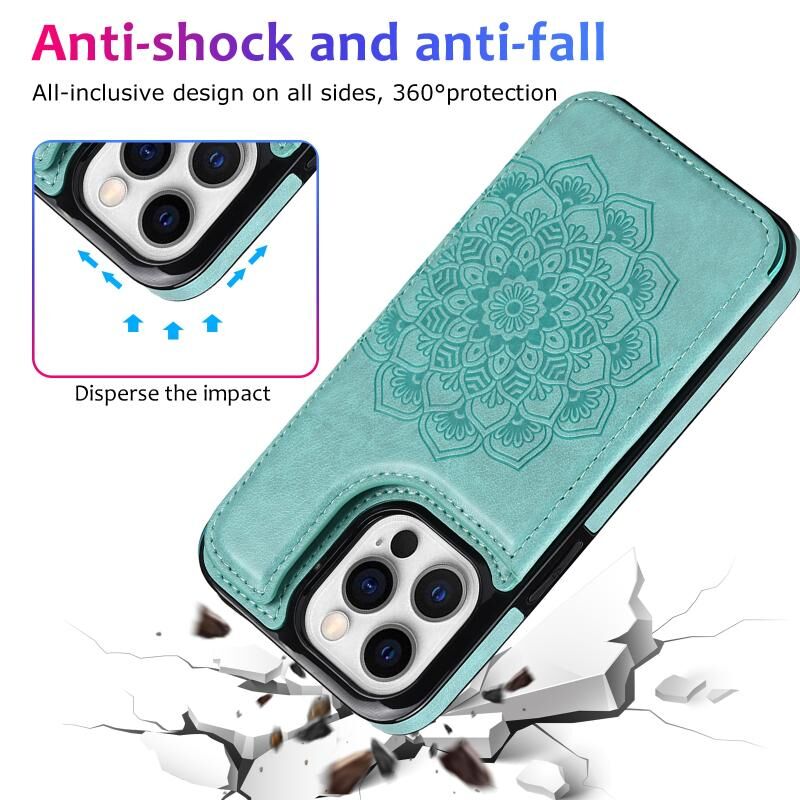 For iPhone 14 Pro Max Double Buckle Mandala Leather Wallet Back Cover Phone Case(Green)