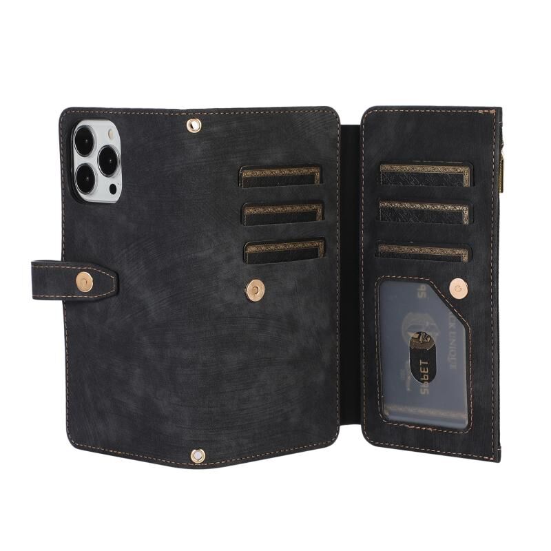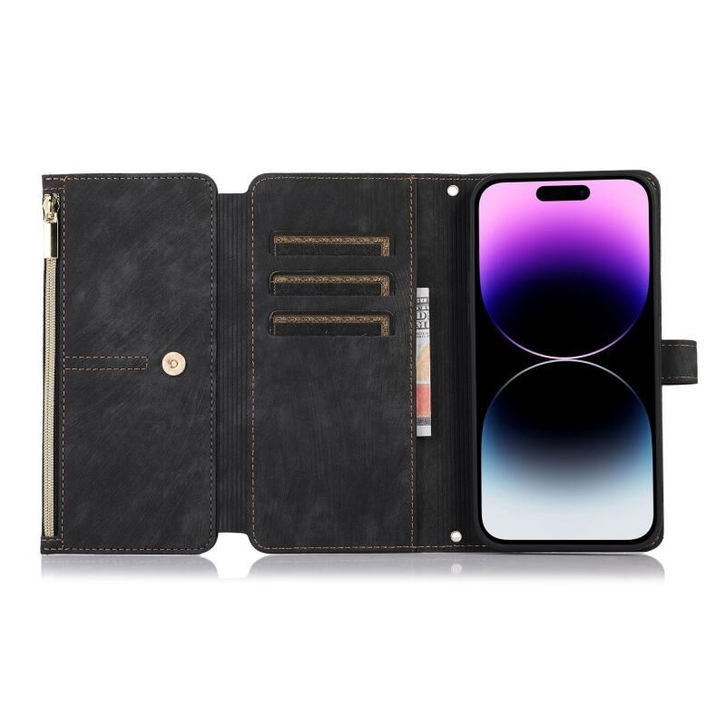 Θήκη κινητού τηλεφώνου από δέρμα με φερμουάρ και τσέπη για 9 κάρτες για iPhone 14 Pro Max Dream (Πράσινο)