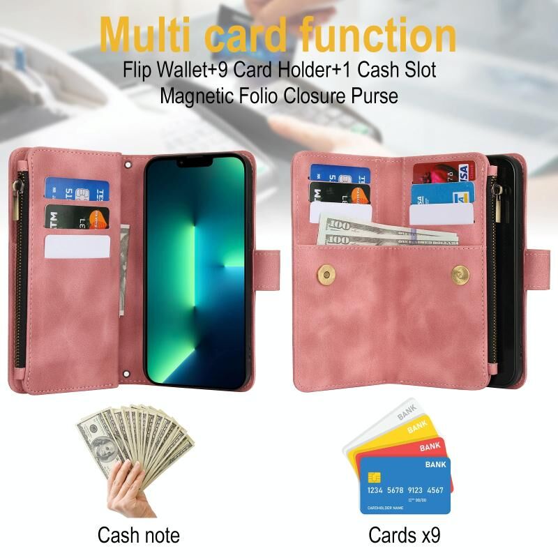 2. Λειτουργία πολλαπλών καρτών: 9 υποδοχές καρτών και 1 θήκη με φερμουάρ για την αποθήκευση των πιστωτικών σας καρτών, μετρητών ή μικρών χαρτονομισμάτων για καθημερινές ανάγκες.