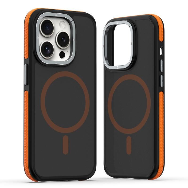 Θήκη iPhone 14 Pro Max Διπλής Χρώματος με Υφή & MagSafe (Μαύρο Πορτοκαλί)