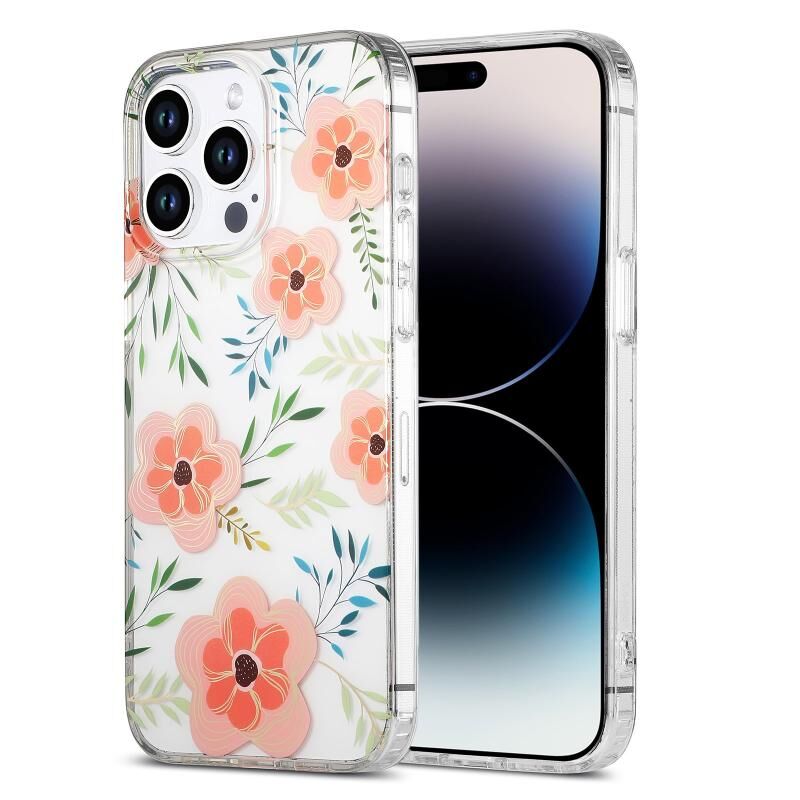 For iPhone 14 Pro Max Dual-side Laminating IMD PC Hybrid TPU Phone Case(Orange Flowers)