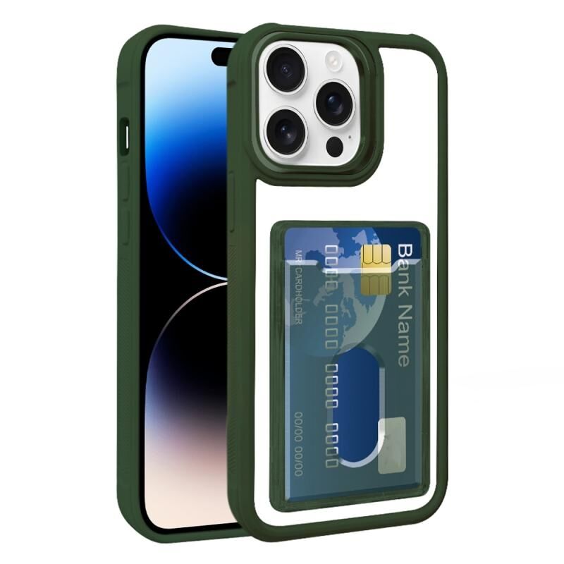 Θήκη κινητού τηλεφώνου για iPhone 14 Pro Max, με ηλεκτρολυτική επικάλυψη, κάρτα και υβριδικό υλικό TPU και ακρυλικό (Μαύρο)