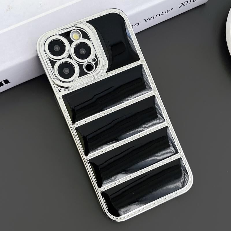 For iPhone 14 Pro Max Electroplated Silver Edge Eiderdown TPU Phone Case(Black)