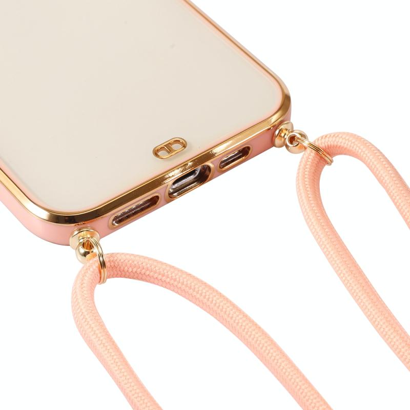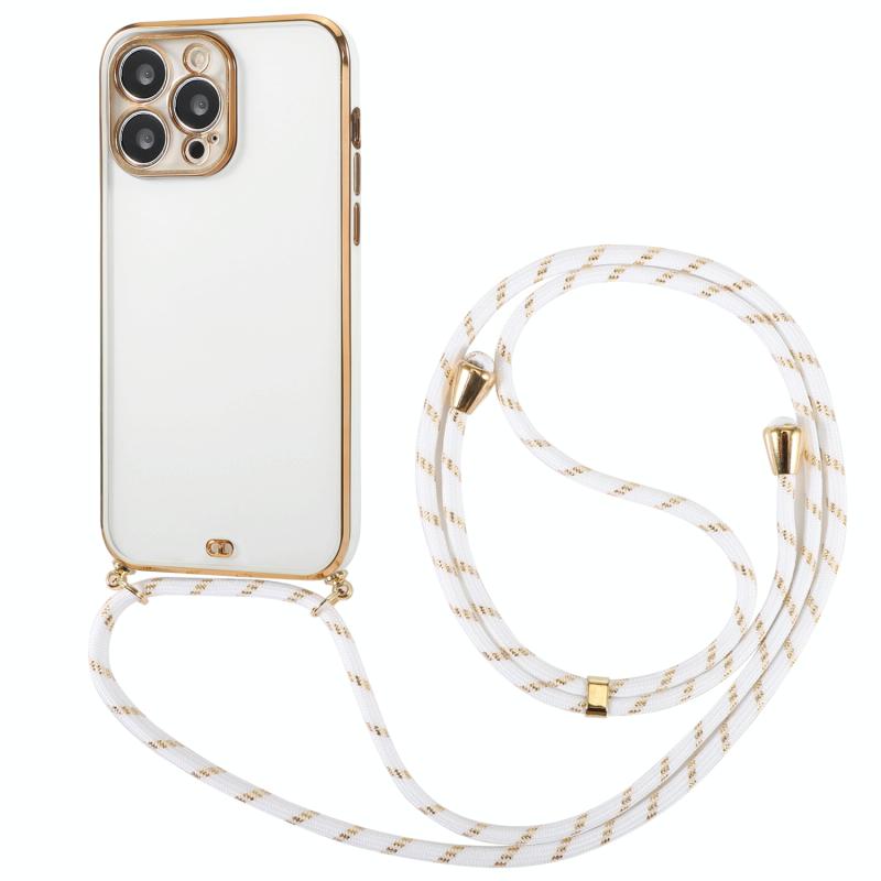 For iPhone 14 Pro Max Electroplated Two-color TPU Phone Case with Lanyard (White)