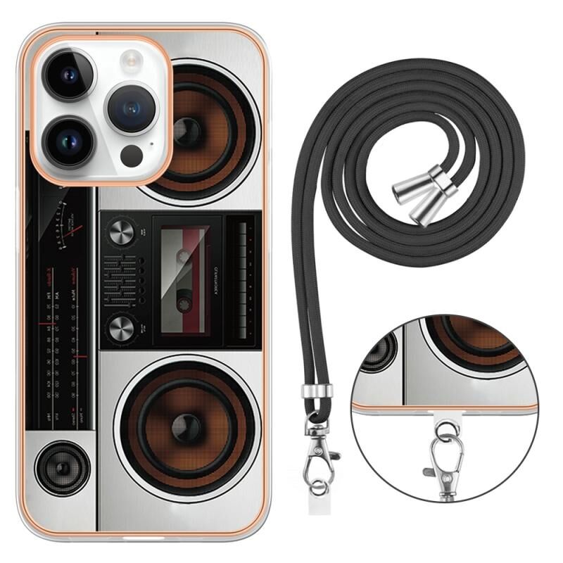 Θήκη iPhone 14 Pro Max με Επιμετάλλωση & Λουρί (Ρετρό Ραδιόφωνο)