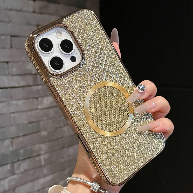 For iPhone 14 Pro Max Electroplating PC Glitter Grain MagSafe Phone Case(Gold)