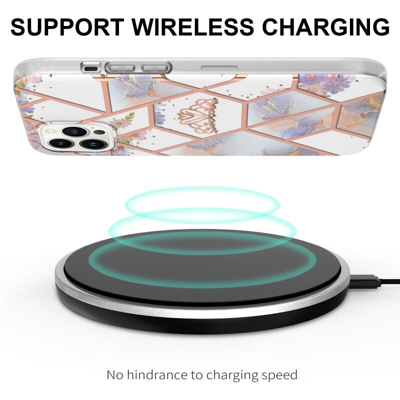Θήκη για iPhone 14 Pro Max με ηλεκτρολυτική επιμετάλλωση, συνδυασμό μαρμάρου και λουλουδιών, από TPU ανθεκτική στις κρούσεις (Crown)