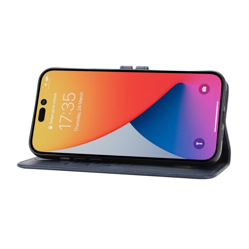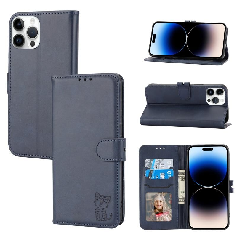 Θήκη τηλεφώνου από δέρμα με σχέδιο χαρούμενης γάτας σε ανάγλυφο για iPhone 14 Pro Max (Κόκκινο)