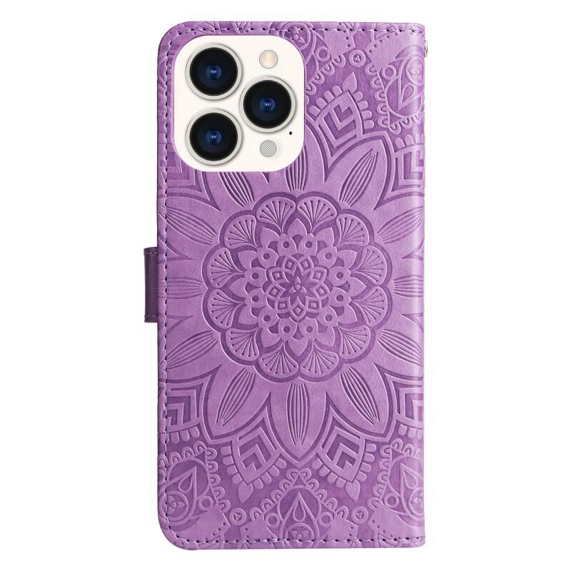 Θήκη τηλεφώνου δερμάτινη με ανάγλυφο ηλίανθο για iPhone 14 Pro Max (Πράσινο)