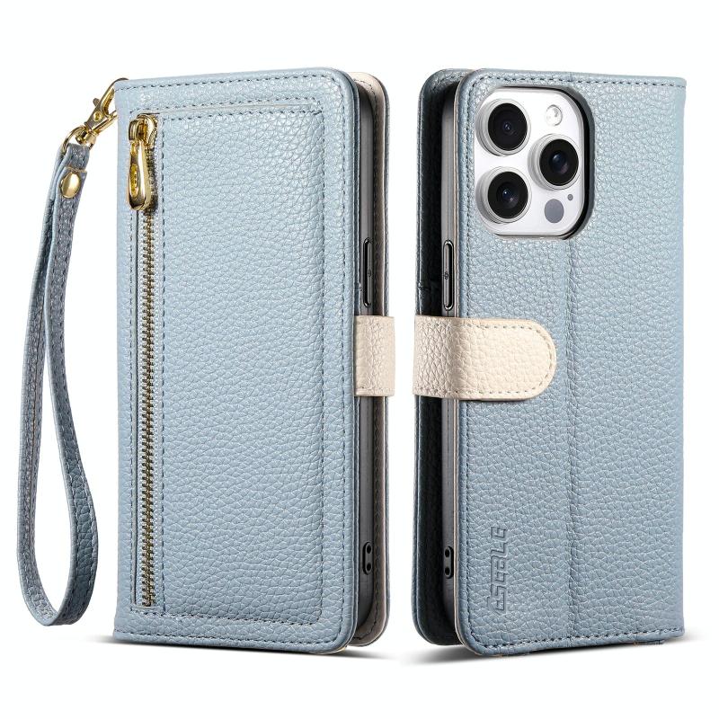 For iPhone 14 Pro Max ESEBLE E11 Colorful Litchi Pattern Zipper Wallet Leather Phone Case(Sky Blue) (ESEBLE)