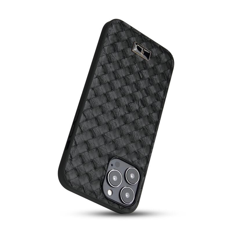 Θήκη κινητού τηλεφώνου Fierre Shann με υφή δέρματος για iPhone 14 Pro Max (Υφαντό Μαύρο) (FIERRE SHANN)