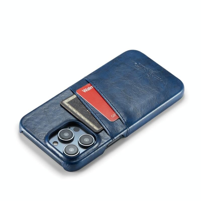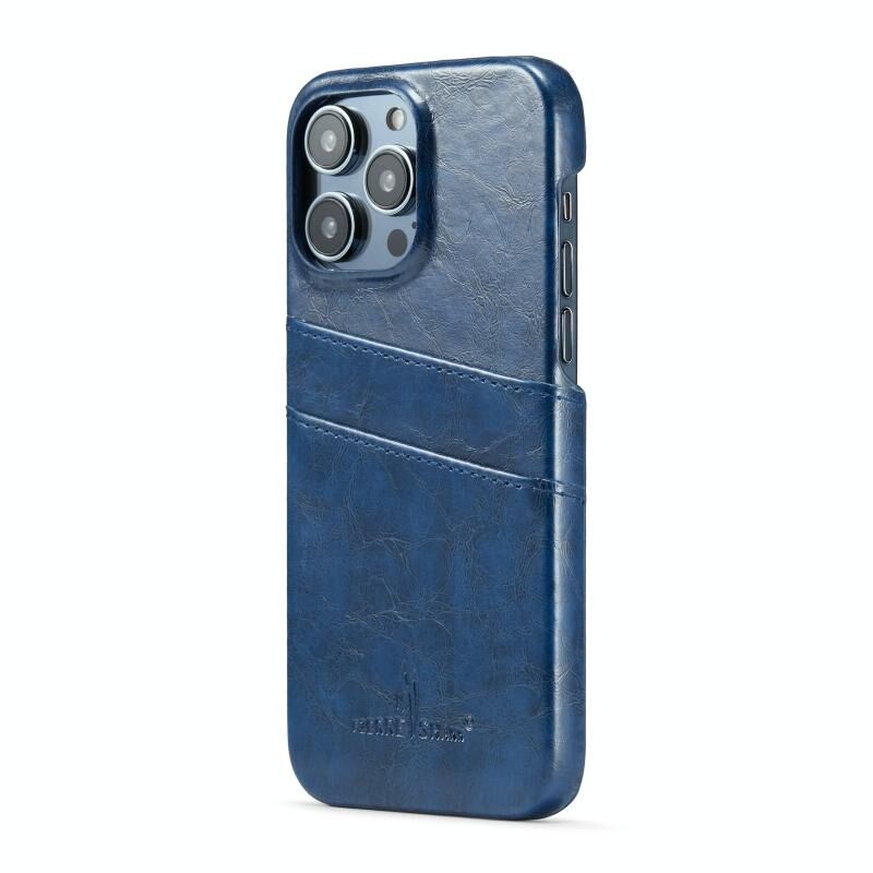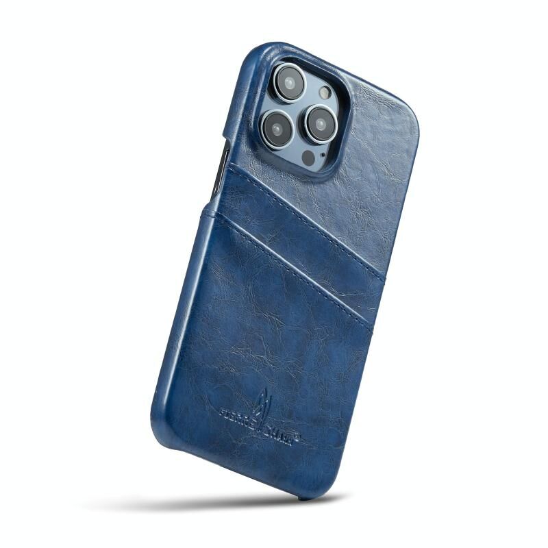 For iPhone 14 Pro Max Fierre Shann Retro Oil Wax Texture PU Leather Case with Card Slots (Blue) (FIERRE SHANN)