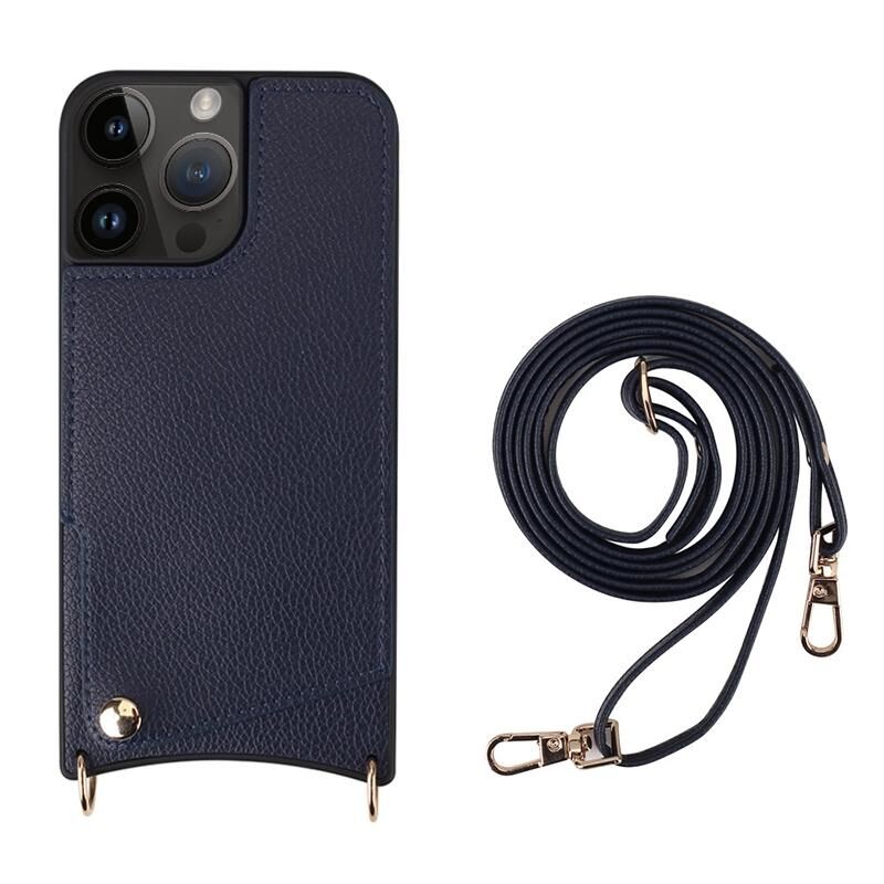 Θήκη κινητού τηλεφώνου για iPhone 14 Pro Max με σχισμή για κάρτες σε σχήμα ουράς ψαριού, PU + TPU, με μακρύ κορδόνι (Σκούρο Μπλε)