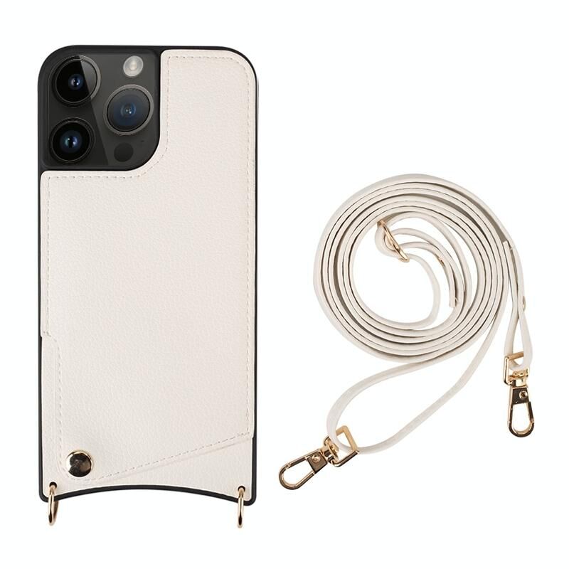 Θήκη κινητού τηλεφώνου για iPhone 14 Pro Max με σχισμή για κάρτες σε σχήμα ουράς ψαριού, PU + TPU, με μακρύ κορδόνι (Σκούρο Μπλε)