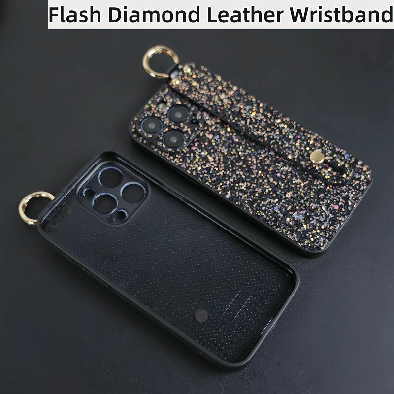 Θήκη τηλεφώνου για iPhone 14 Pro Max με Λουρί Χεριού από Διαμάντια (Λευκό Flash)