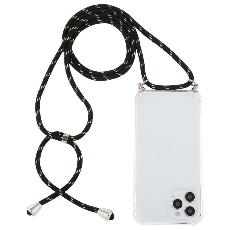 Θήκη για iPhone 14 Pro Max, Διαφανής TPU ανθεκτική στις κρούσεις με προστασία στις τέσσερις γωνίες και λουρί (Μπλε Λευκό)