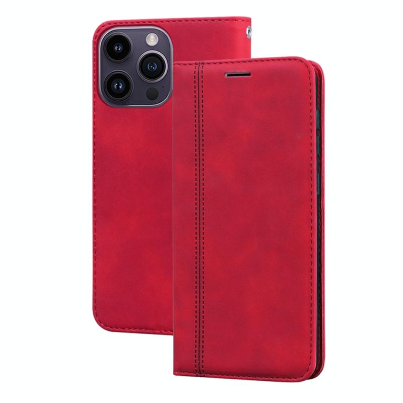 Θήκη τηλεφώνου με μαγνητικό κλείσιμο, οριζόντια, από δερματίνη PU για iPhone 14 Pro Max, με ματ φινίρισμα (Κόκκινο)