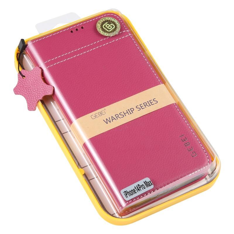 Θήκη τηλεφώνου από δέρμα με οριζόντιο άνοιγμα για iPhone 14 Pro Max GEBEI (Κόκκινο Ρόδι) (GEBEI)