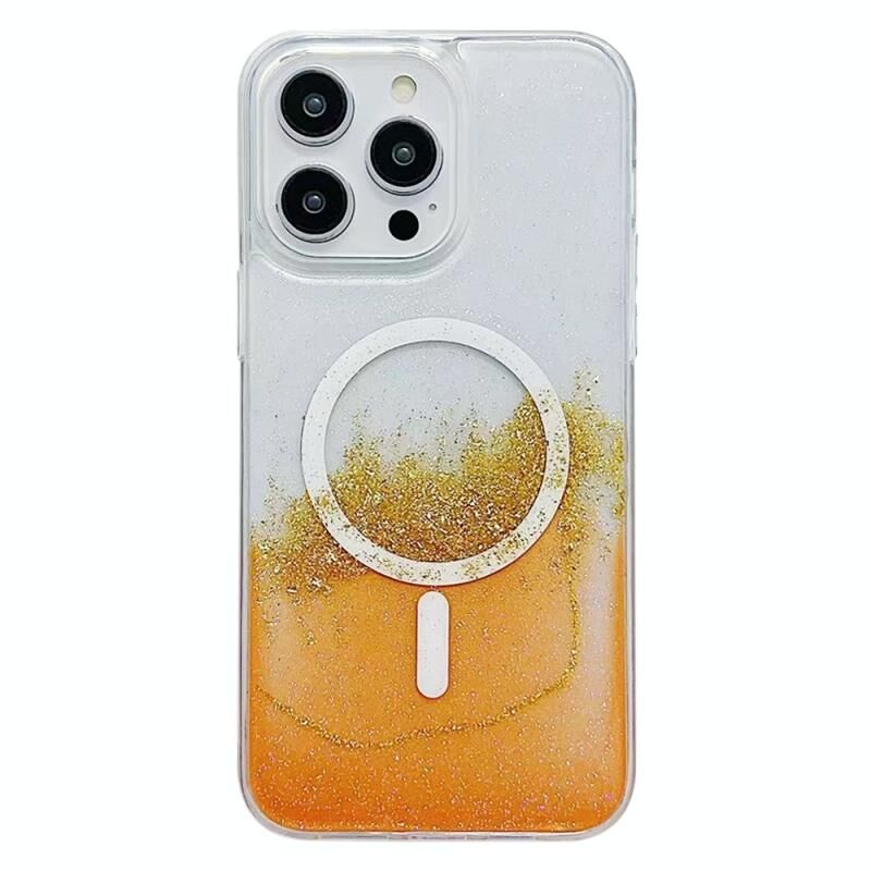 Θήκη κινητού τηλεφώνου για iPhone 14 Pro Max, με επιχρύσωση, υβριδική, διαφανής, από TPU, με MagSafe (Πορτοκαλί)