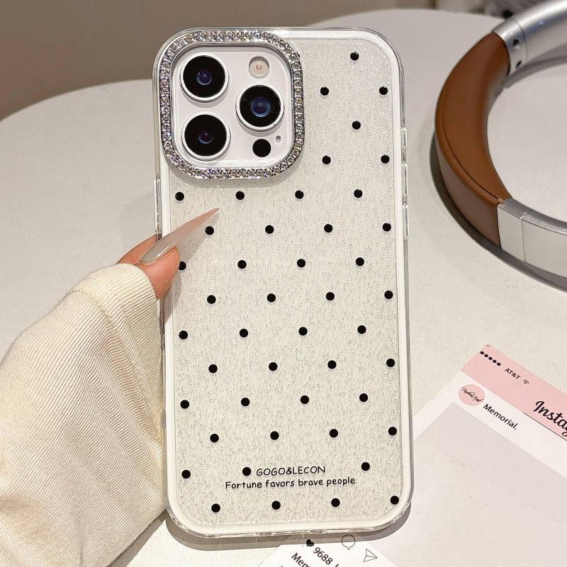 For iPhone 14 Pro Max Glitter Powder Dots Pattern Rhinestone Large Hole Phone Case(White)