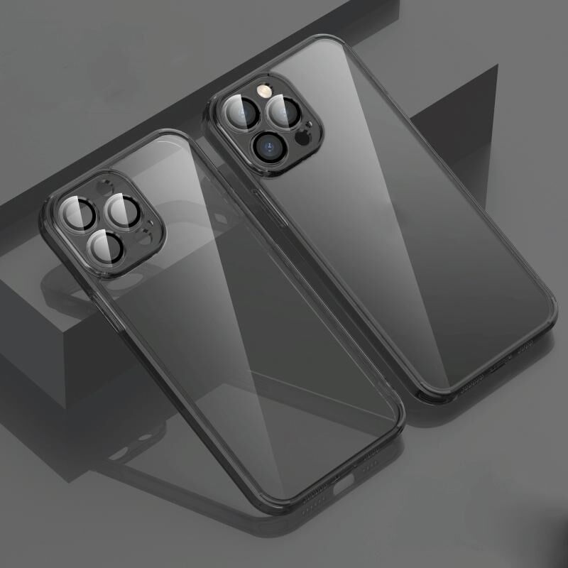 For iPhone 14 Pro Max Glossy PC Phone Case with Lens Film (Transparent Black)