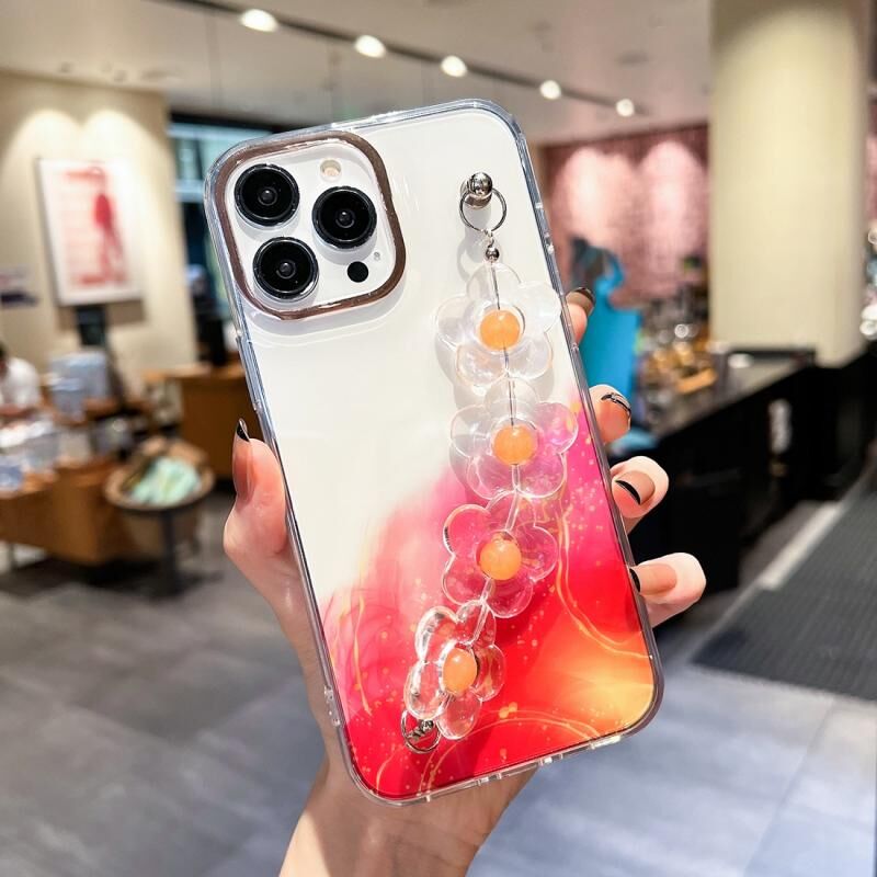 Θήκη για iPhone 14 Pro Max σε Χρυσό με σχέδιο Μάρμαρου Halo και Βραχιόλι Λουλουδιών (Ροζ)