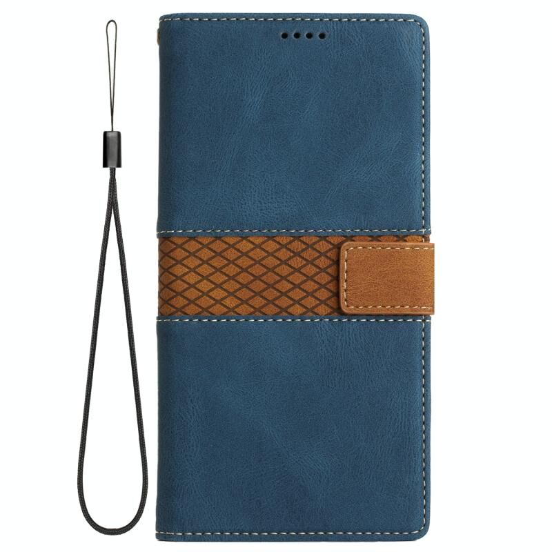 Θήκη τηλεφώνου από δέρμα με ραφή πλέγματος για iPhone 14 Pro Max με κορδόνι (Μπλε)