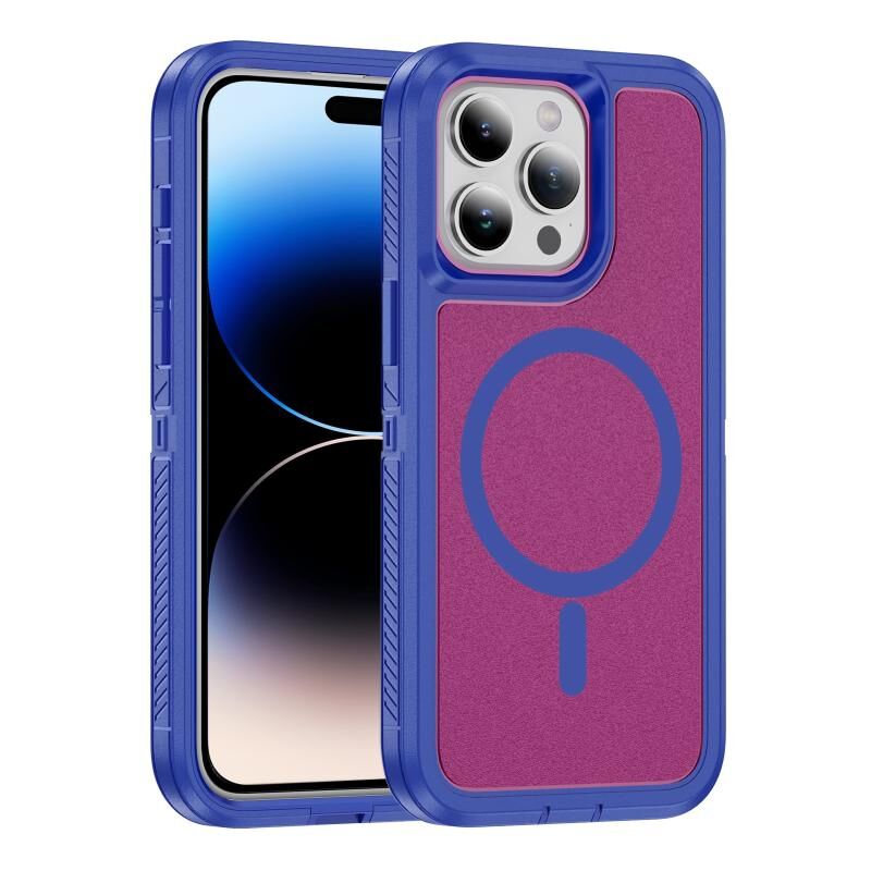 For iPhone 14 Pro Max Guard Magsafe Magnetic Ring Matte Phone Case(Blue+Rose Red)