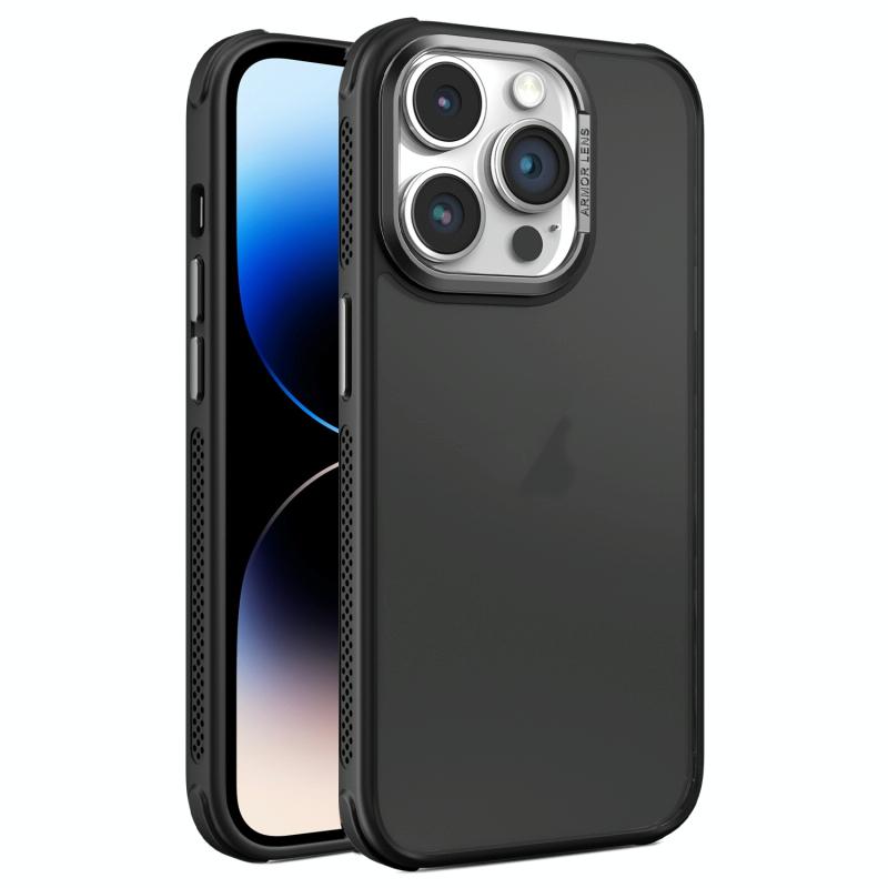 For iPhone 14 Pro Max Hardware Side Cooling Skin Feel Frosted Metal Lens Frame Phone Case(Black)