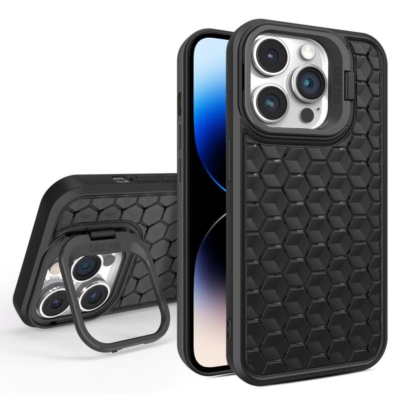 For iPhone 14 Pro Max Honeycomb Radiating Lens Holder Magsafe Phone Case(Black)
