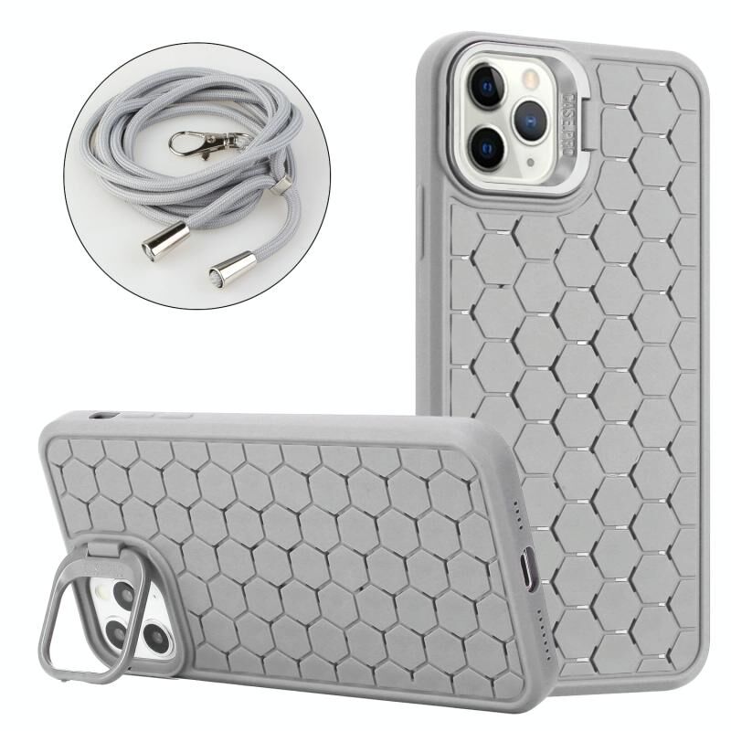 For iPhone 14 Pro Max Honeycomb Radiating Lens Holder Magsafe Phone Case with Lanyard(Grey)