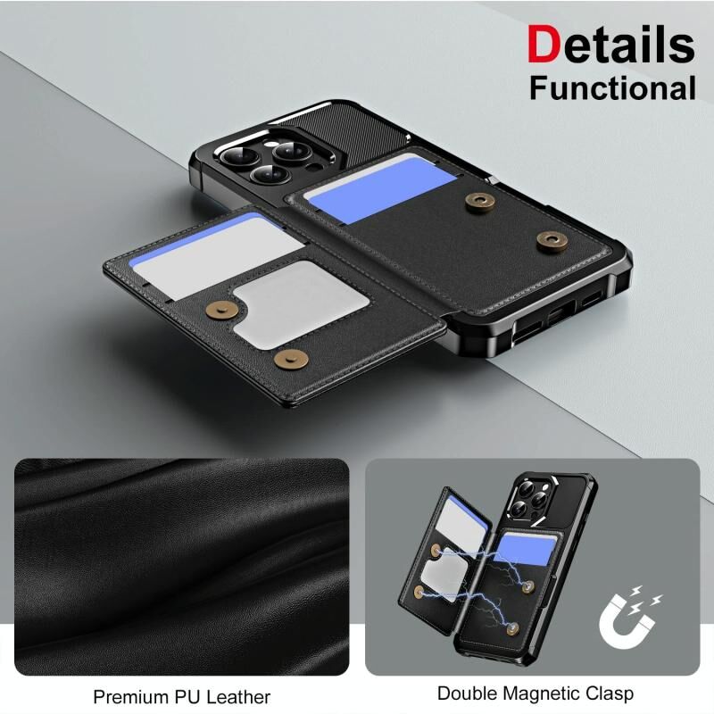 4. Μαγνητικό Κλείσιμο: Το ισχυρό μεταλλικό μαγνητικό κούμπωμα εξασφαλίζει την ασφάλεια των καρτών (πιστωτικών / χρεωστικών / ταυτότητας) και των χρημάτων σας.