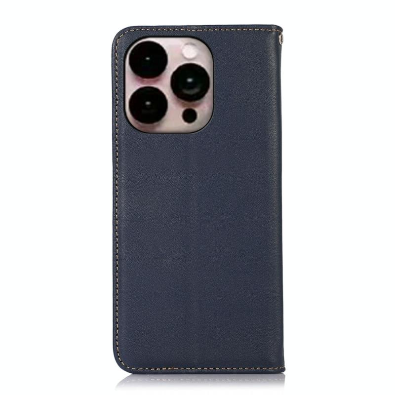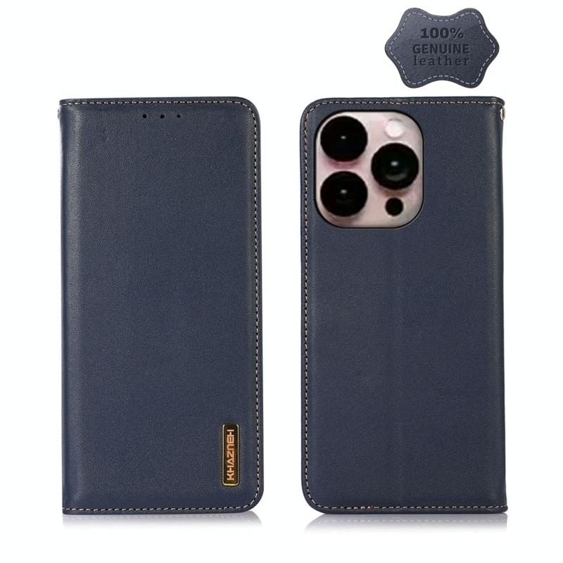 For iPhone 14 Pro Max KHAZNEH Nappa Top Layer Cowhide Leather Phone Case (Blue)