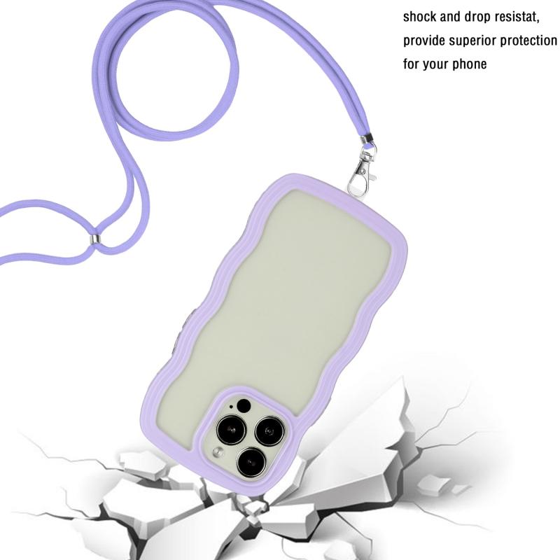 Θήκη τηλεφώνου για iPhone 14 Pro Max με κορδόνι, διαφανές TPU και PC σε χρώμα καραμέλας (κύμα) (Μωβ)