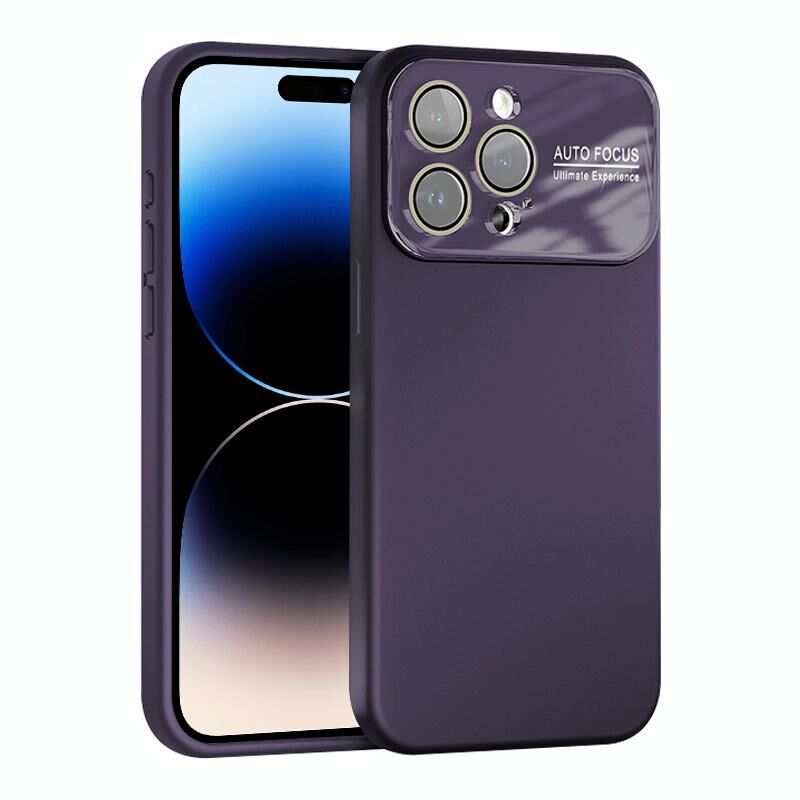For iPhone 14 Pro Max Large Window Acrylic Lens Film + Liquid Silicone Full Coverage Phone Case(Dark Purple)