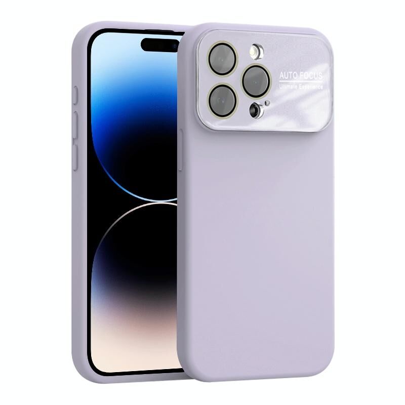 For iPhone 14 Pro Max Large Window Acrylic Lens Film + Liquid Silicone Full Coverage Phone Case(Purple)