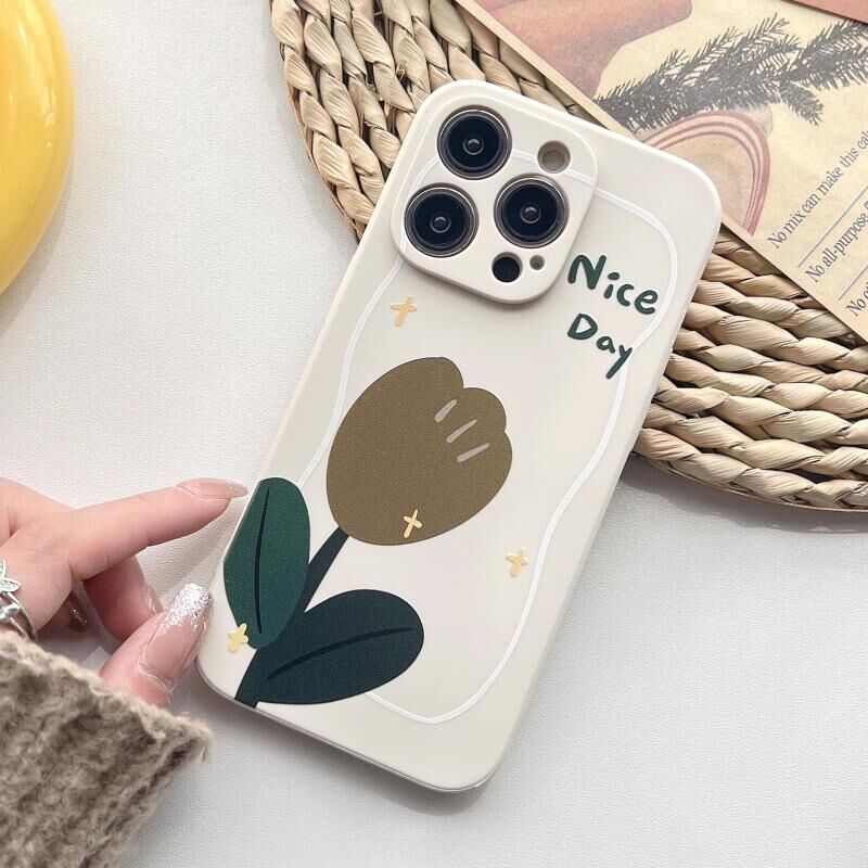 Θήκη τηλεφώνου για iPhone 14 Pro Max, Υγρή σιλικόνη με ευθείες άκρες (Τουλίπα)